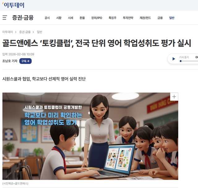 2026-02-06토킹클럽 '영어 학업성취도평가' 주요 언론사 뉴스기사 게재