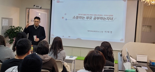 이번 설명회는 대치DM교육연구소 이태경 소장님을 초청하여 [소통하는 부모, 공부하는 자녀]라는 주제로 진행되었습니다.